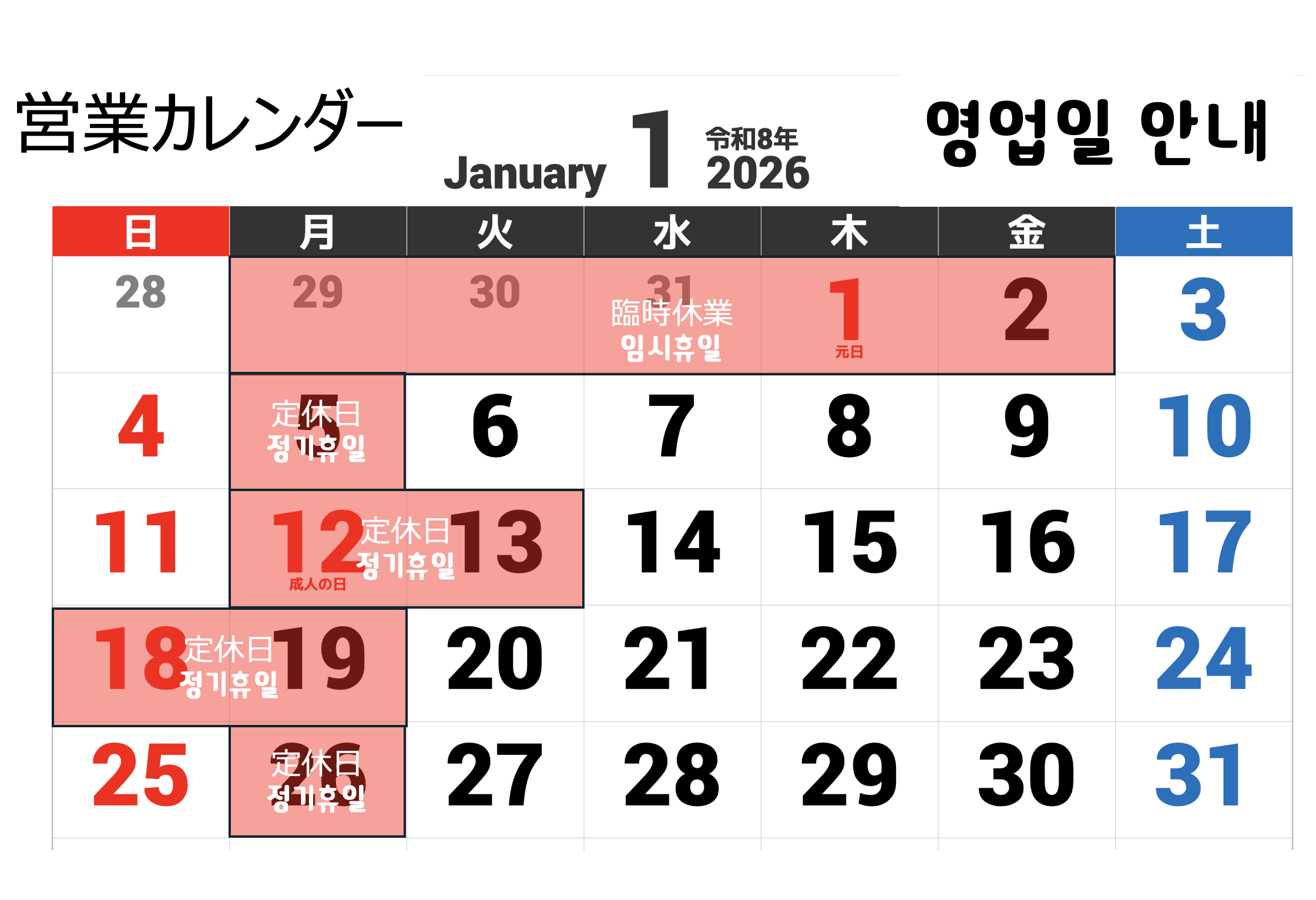 定休日:毎週月曜日