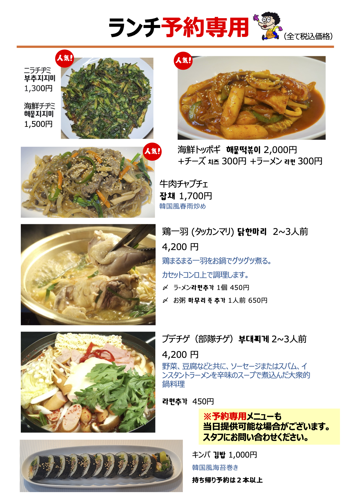 本場韓​国家庭料理・定食専門店